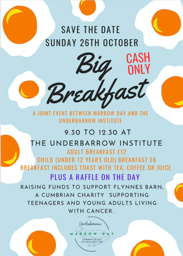 Underbarrow Marrow Day’s Big Breakfast9 April 2026Underbarrow Marrow Day ran a Big Breakfast on Sunday 26th October 2025 in support of Flynne’s Barn, at The Underbarrow Institute in the South Lakes. They raised a fab £1000 for us!